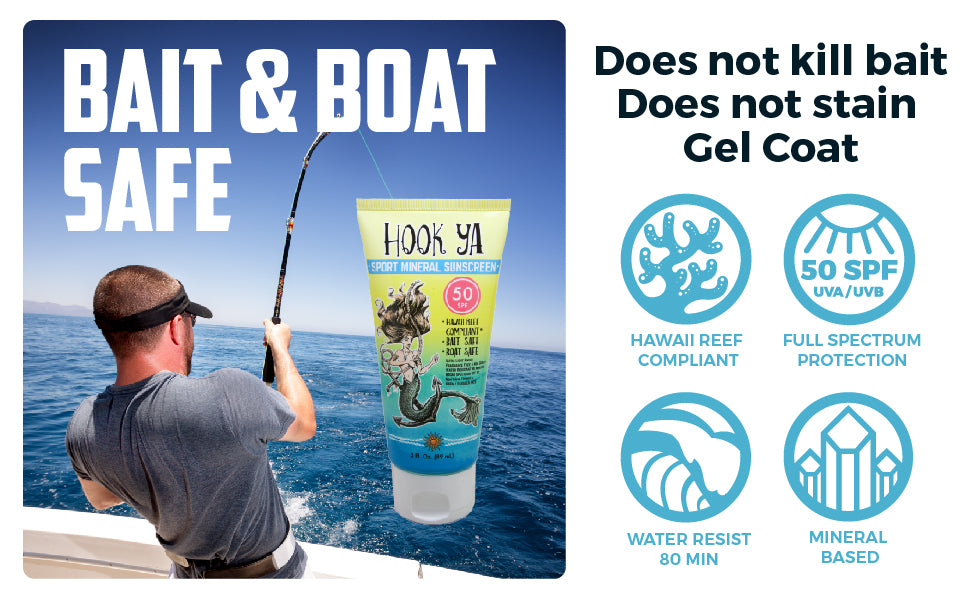 Traditional sunscreens can stain your boat, kill bait, irritate your skin, and run into your eyes when you need focus the most.
